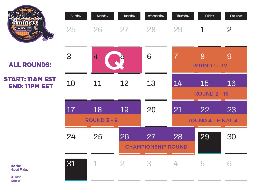 Stay tuned for live updates and follow the action at MarchMuttness.org. Witness the progress of the competition with live brackets, and see how your support is making an impact in real-time.