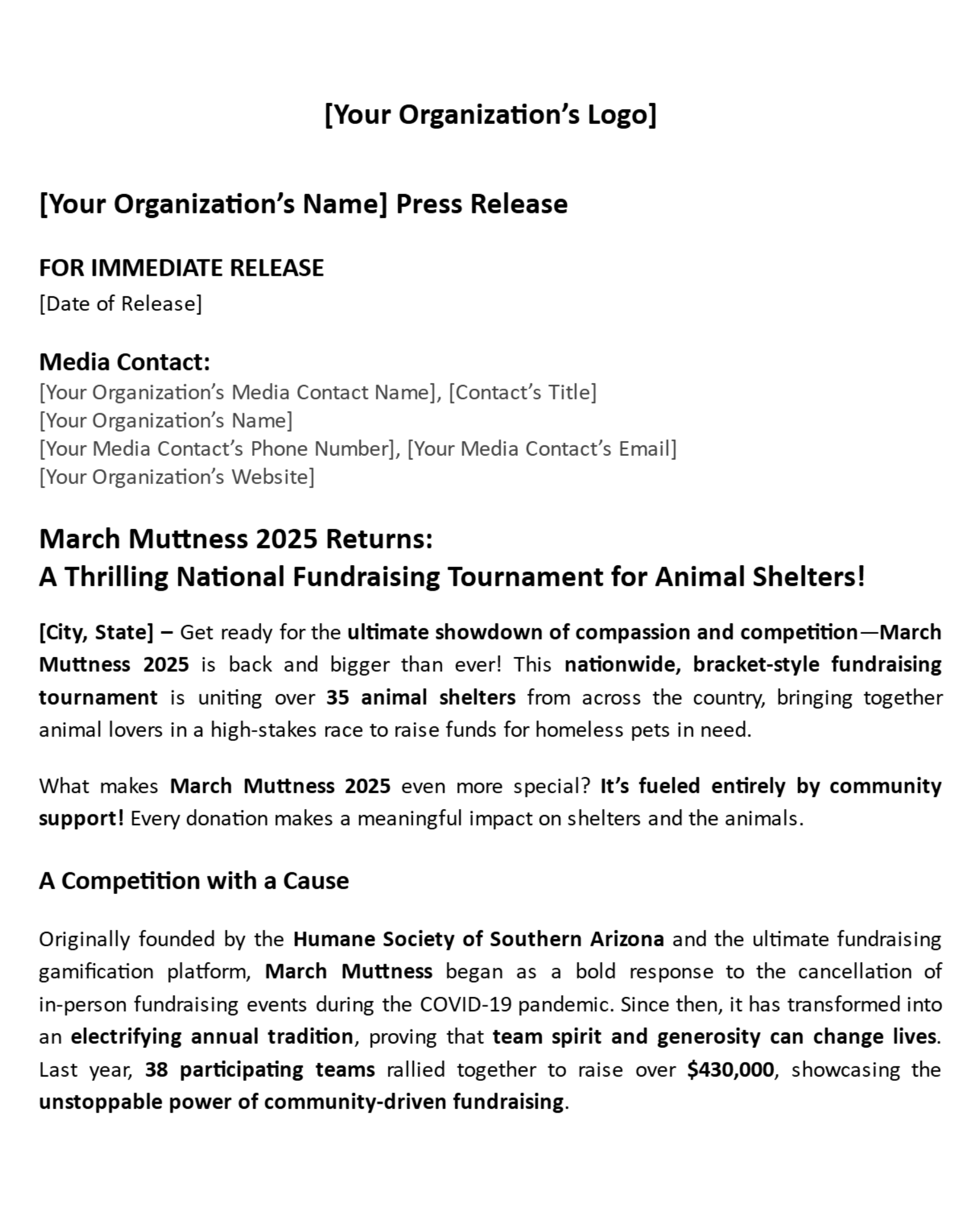Thank you for being part of this exciting event. We look forward to supporting you throughout March Muttness 2025!
