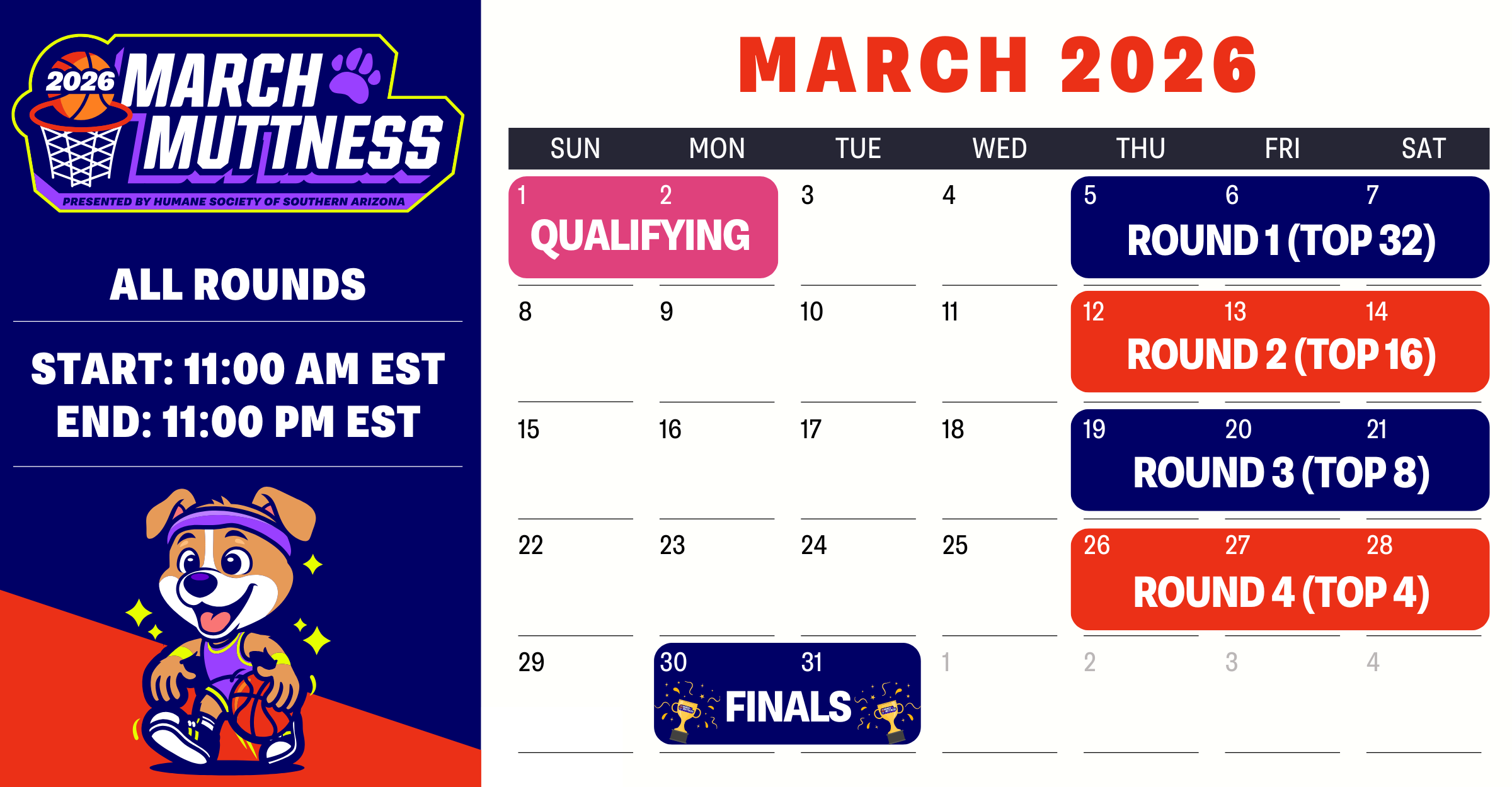 Thank you for being part of this exciting event! We look forward to supporting you throughout March Muttness 2026.